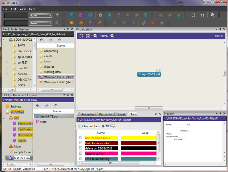 EPClips helps people organize and access their files used in conducting business. It provides an audit trail that answers the questions: